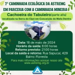A Astremg, em parceria com o grupo Caminhada Mineira, tem o prazer de organizar a 8ª Caminhada Ecológica. O evento terá início nas “Duas Pontes”, um monumento histórico da Serra do Cipó, próximo à estátua do “Juquinha”, com destino à deslumbrante Cachoeira da Congonhas, localizada na Serra do Cipó, em Conceição do Mato Dentro.